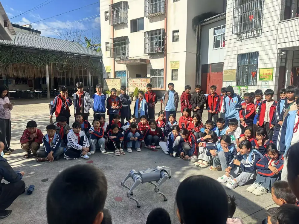 最受孩子们欢迎的当属机器狗表演。伴随着指令,灵活的机器狗完成了前进、转弯、跳跃、舞蹈等高难度动作,憨态可掬又充满科技感的模样让孩子们惊叹连连,纷纷围拢上前近距离观察,亲身感受人工智能的独特魅力。与此同时,益智活动区也吸引了不少师生驻足,师生共同动手破解益智游戏的难题,大家在沉浸式体验中揭开科学的神秘面纱。活动最后,工作人员还向师生们发放了科普宣传手册、趣味科学绘本等材料,鼓励孩子们在课后继续探索科学世界。