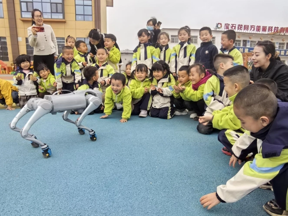 志愿服务队精心准备了跳舞机器人、机械狗、VR眼镜等创新科技设备,以及多款桌面科技展品。活动现场,跳舞机器人随着音乐翩翩起舞,机械狗灵活避障、互动对话,VR眼镜带领孩子们“穿越”到虚拟世界,引得现场惊叹连连。志愿者们还设置了科学小实验区,通过简单材料演示物理、化学原理,让孩子们在动手操作中感受科学魅力。