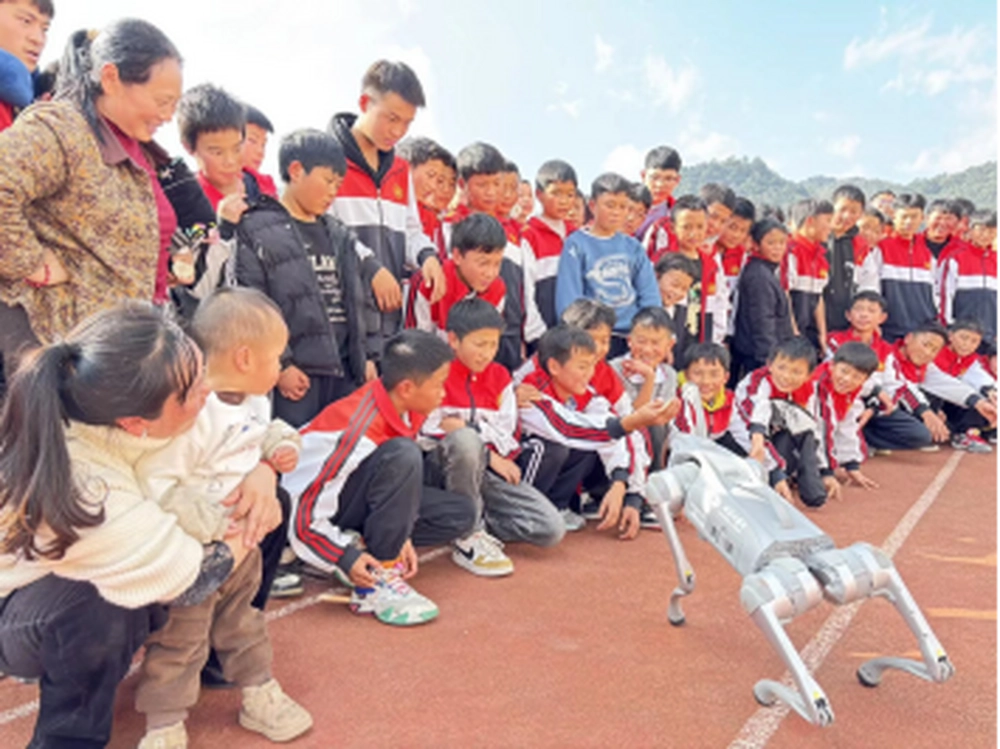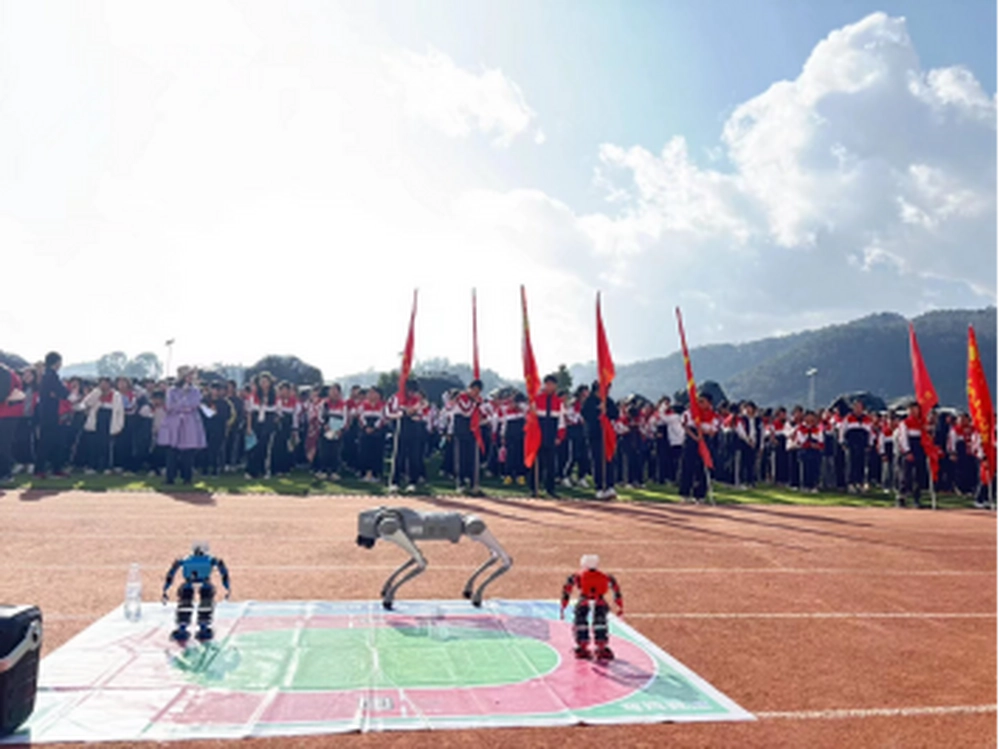 活动现场,一系列趣味实验和科普表演轮番登场。经典的“马德堡半球实验”让同学们直观感受到大气压力的巨大力量;“空气大炮”发射出的清晰烟圈涡环,引发了阵阵惊叹;在尤为精彩的“静电储存与释放”互动环节,同学们手拉手连接成电路,一同亲身感受了静电传导瞬间的奇妙触感与科学的神奇魅力,现场惊呼与欢笑不断。智能机器人、机器狗的灵活表演,更是将现场气氛推向新高度,展现了现代科技的神奇与未来感。