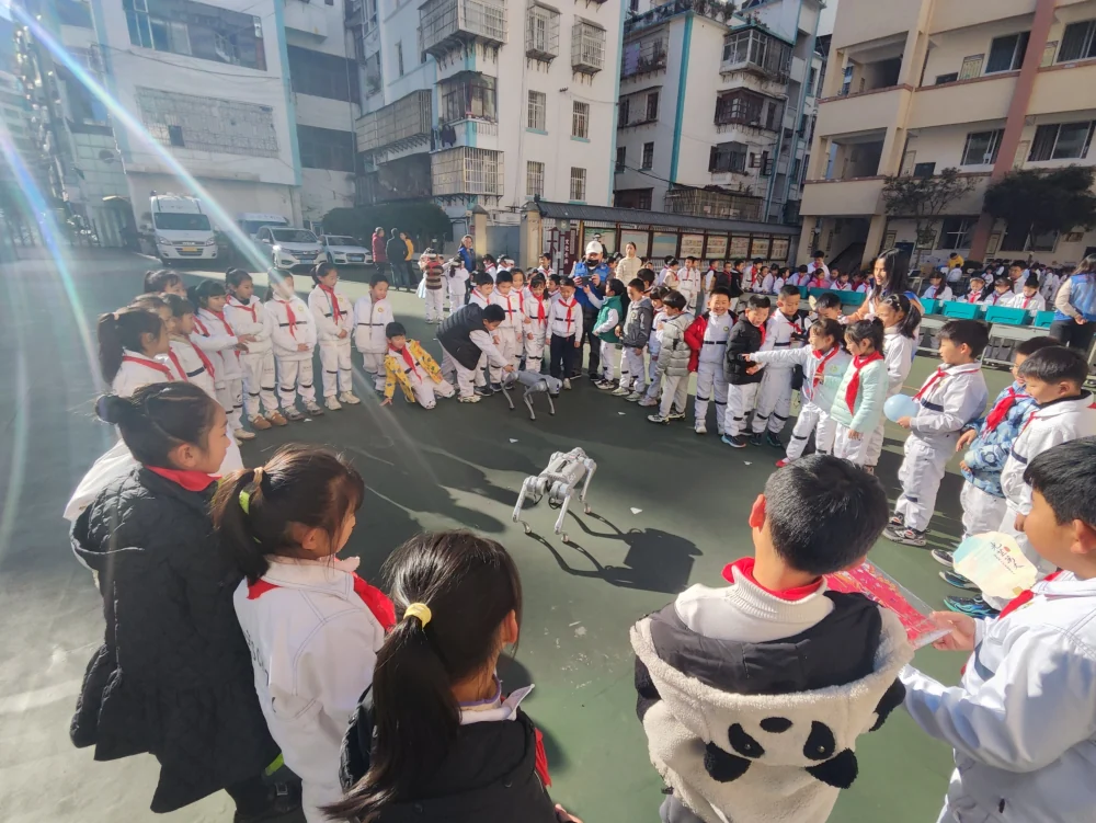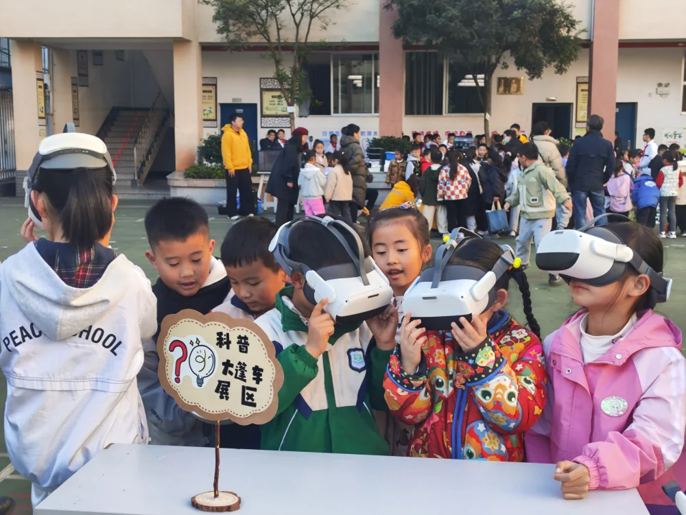 在科普大篷车展区,科普志愿者准备了丰富多元的科技体验项目:机器人精准表演舞蹈动作,引得师生们阵阵欢呼;戴上VR眼镜,孩子们瞬间“穿梭”于宇宙太空、深海等场景,沉浸式感受科技带来的奇妙旅程;机器狗灵活完成跳跃、翻滚等指令,与同学们亲切互动;机甲大师操作区里,孩子们亲手操控设备在场地穿梭,体验科技乐趣;科普教具体验区的各类实验装置更是让大家爱不释手,同学们纷纷动手操作,在实践中探索汉诺塔等科普游戏。