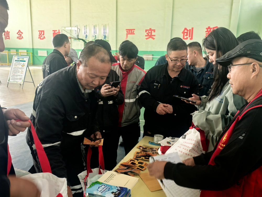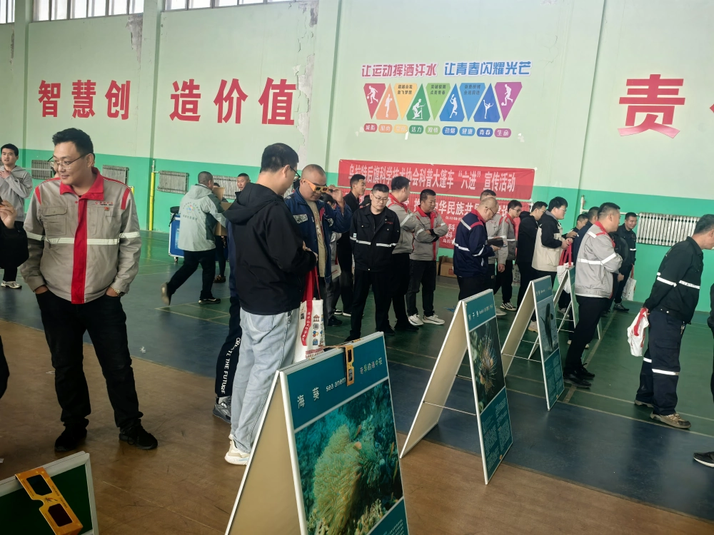 活动现场设置在企业的室内活动场馆,科普大篷车带来的3D科普展板、科技体验道具吸引了众多职工驻足参与。大家纷纷拿起3D眼镜,沉浸式探索海洋生物、自然科学等立体科普内容;工作人员还向职工发放科普手册、科技文创礼品,结合企业生产实际,讲解安全生产、科学防护、网络安全等与工作生活息息相关的知识,现场互动氛围热烈。