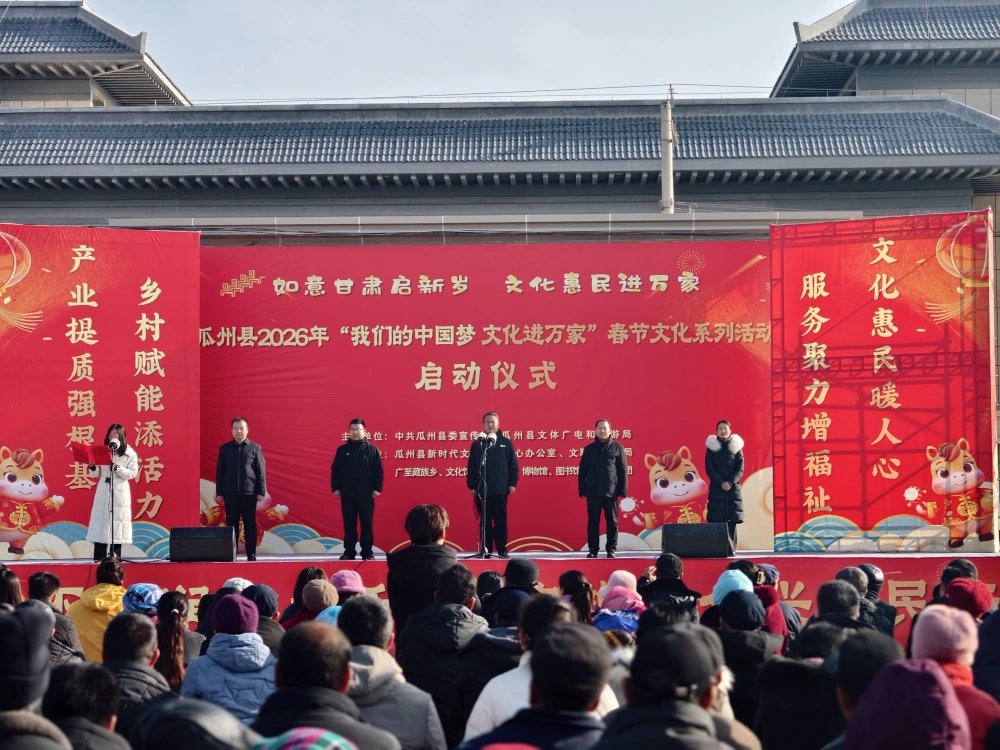 1月5日,瓜州县科技局、县科协携手县文体广电和旅游局、广至藏族乡等单位,在广至藏族乡文体广场正式启动“我们的中国梦·文化进万家”2026年春节文化系列活动。活动将科技创新活力与科学普及温度融入新春佳节,为基层群众送上了一份干货满满、诚意十足的“科技新春礼”。