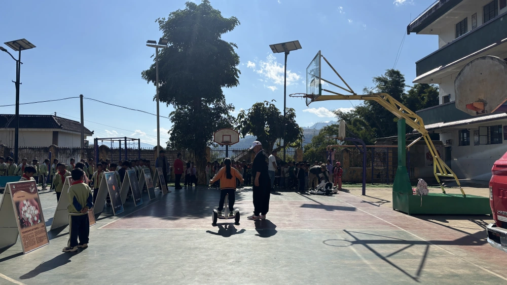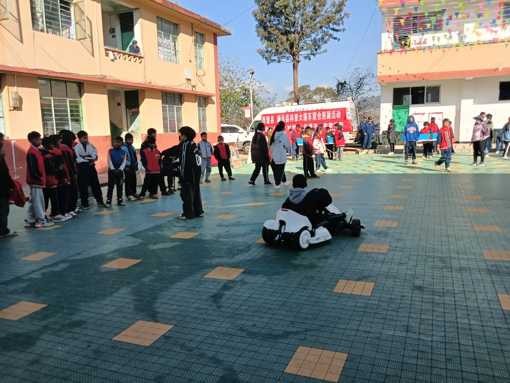 活动足迹遍布西盟县勐卡镇国门学校、勐卡镇小学、勐卡镇莫美村小学、新厂镇中小学、新厂镇阿莫村小学、岳宋乡小学。活动内容丰富多元,现场展出31件思维训练展品、人工智能展演、卡丁车与平衡车体验、科学实验空气炮、科普展板、新《科普法》、民族团结、应急科普宣讲及反邪教宣传等多项内容;活动形式直观生动,通过直观演示、动手操作、现场讲解、发放宣传材料等方式,让师生和群众在沉浸式体验中深入探索科学原理、感受科技魅力,系统学习应急处置技能,清晰认清邪教危害。