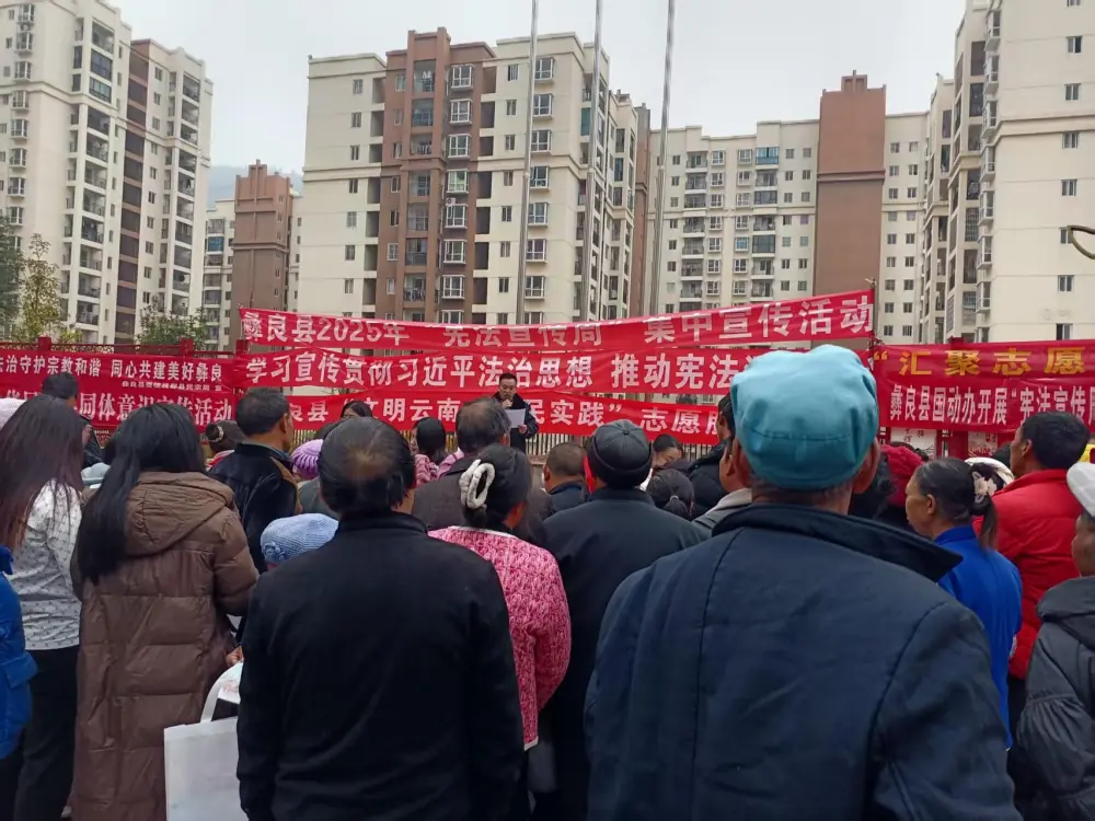 为了增强全民宪法意识,弘扬宪法精神,加强宪法实施,12月2日,彝良县委宣传部、县司法局、县科协等单位在发界街道团结社区开展宪法集中宣传活动。