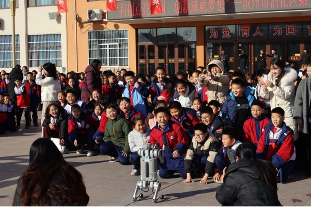科普大篷车给大家带来VR 虚拟世界、尖端放电、彩色的影子等20余件涉及声、光、电、磁、力的科学装置,让同学们在动手实践中感受科学魅力,现场摆放的滨州籍八院士展板让学生直观感受家乡的人才底蕴与创新基因,增强对家乡的认同感、自豪感与建设家乡的责任感。机器狗表演更是吸引了同学们的目光,引得同学们阵阵欢呼。