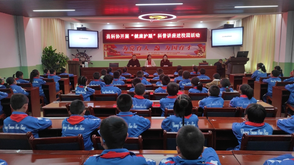 为积极响应国家儿童青少年近视防控号召,切实增强学生爱眼护眼意识,近日,玛曲县科协在城关九年制学校成功举办“健康护眼”科普知识讲座暨科普大篷车进校园主题活动,为青少年视力健康保驾护航。本次活动以“普及科学用眼知识、降低近视发生率”为核心目标,通过丰富多样、互动实用的形式,将专业眼健康知识送入校园,特邀甘肃省儿童青少年近视防控专家开展专题讲座,借助图文并茂的PPT与生动动画,深入浅出讲解眼睛构造、近视形成原因与危害,重点强调“保持正确读写姿势、控制电子产品使用时间、保证充足睡眠与均衡营养”等关键防控措施;讲座中同步设置趣味知识互动环节,学生踊跃参与用眼卫生相关问题作答,在轻松氛围中巩固知识、纠正日常用眼误区;工作人员还为部分学生开展初步视力检查,并向师生发放《爱眼护眼知识手册》与宣传折页,推动护眼理念延伸至家庭,全方位帮助学生认识视力保护的重要性,掌握预防近视的技能,从小养成良好用眼习惯。此次活动获得全体师生高度认可。学生表示,不仅意识到保护眼睛的紧迫性,还学到实用护眼技巧,未来将像爱护生命一样呵护视力;教师认为活动贴合学生实际,为学校开展近视防控工作提供有力支持,后续会将护眼知识融入日常教学管理。