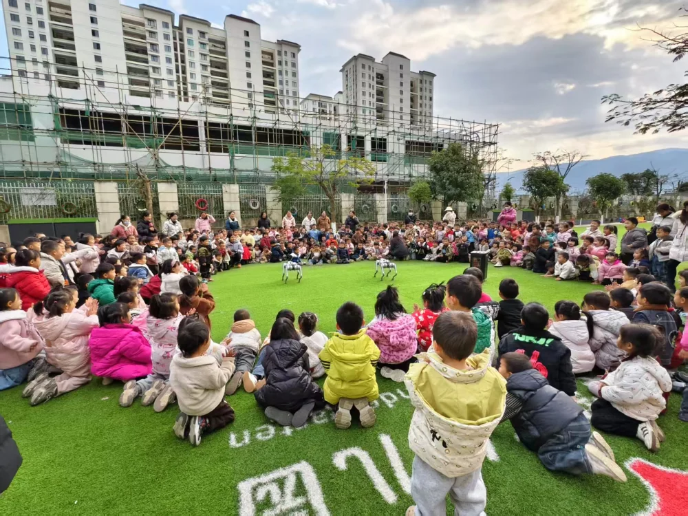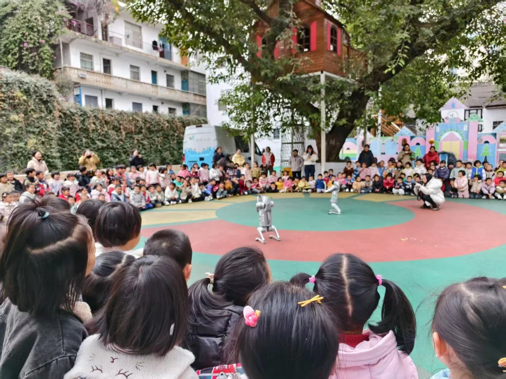 孩子们在老师的有序带领下纷纷来到活动现场。机器狗表演、VR眼镜体验、天文望远镜、益智游戏等科普展品的展示,让现场欢笑声、惊叹声此起彼伏。