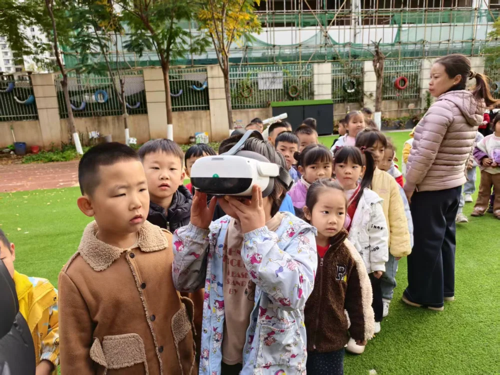 让孩子们感到奇妙的还有VR眼镜体验,当他们戴上设备,一个立体的、可交互的虚拟世界便呈现在眼前,这种沉浸式的体验让他们直观地感受到了科技的神奇魅力。