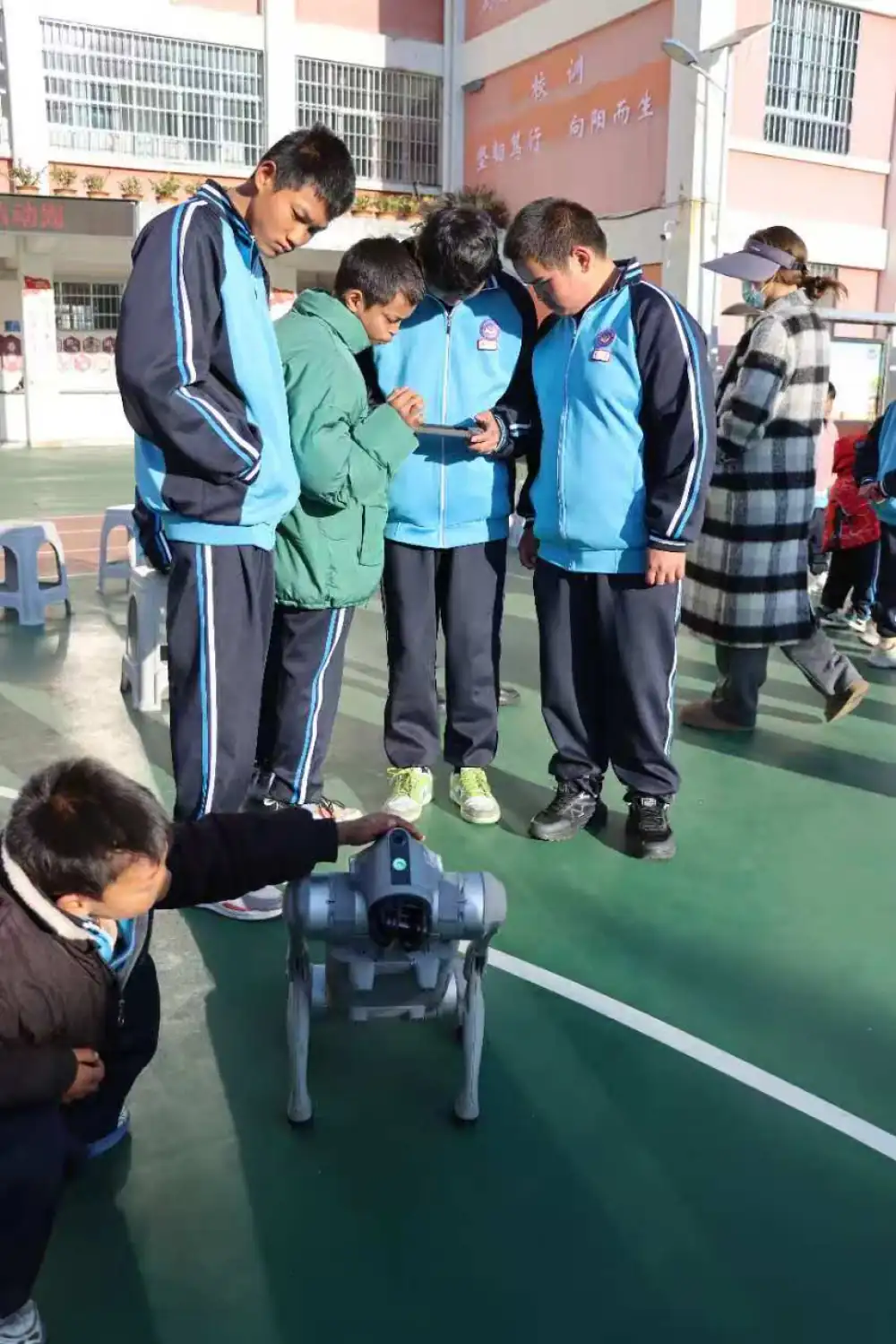 为了让孩子们深度参与,工作人员邀请大家亲自动手操作,手把手指导他们操控机器狗行走、完成简单指令,耐心解答每一个疑问,鼓励孩子们大胆尝试。