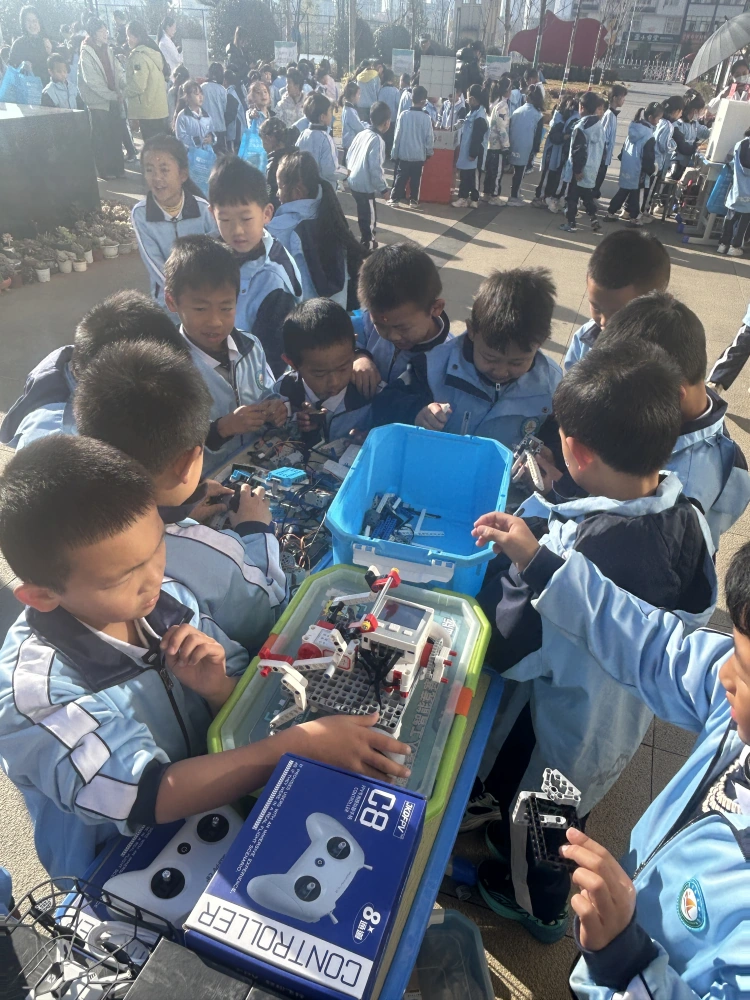 科普大篷车化身为“移动的科技馆”,带来了30余件涵盖声、光、电、磁、力等领域的互动展品,将抽象的科学原理转化为可触可感的体验。学生们透过三棱镜观察光的色散,在电磁展台感受无形之力的神奇,通过齿轮传动理解机械结构的精巧。每一件展品都像一本立体教科书,在孩子们心中悄然播下科学的种子。
