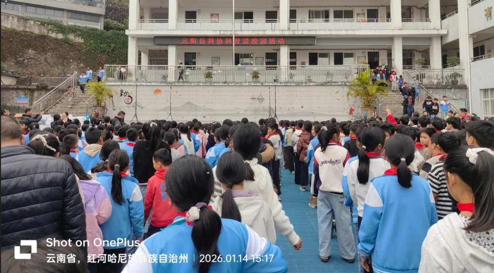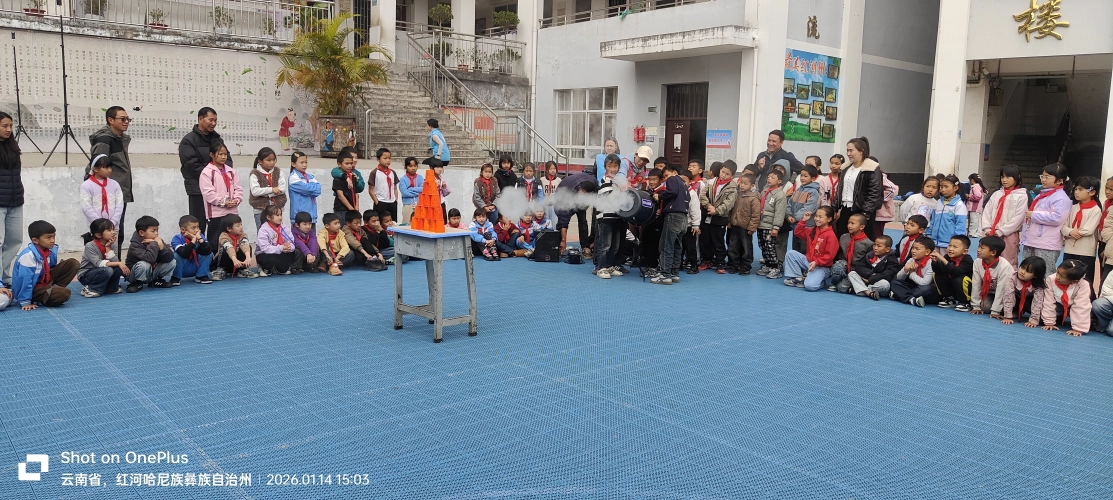 1月14日,元阳县科协积极响应州科协统一部署,积极配合“三下乡”科普宣传行动,携手在元阳县牛角寨镇中心小学成功举办了一场精彩纷呈的校园科普活动。活动覆盖全校1300余名师生,以趣味互动为核心,为同学们量身打造了一场沉浸式科技体验盛宴,让科学魅力在校园中悄然绽放。