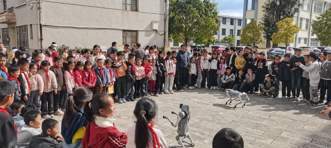 智能机器狗表演环节更是将活动推向高潮。灵活的转身、连贯的跳跃、整齐的舞蹈动作,引得同学们阵阵欢呼,大家纷纷凑到台前近距离观看,好奇地向辅导员询问机器狗的工作原理。整场活动中,辅导员们用通俗有趣的语言普及科学知识,耐心解答孩子们的疑问,让科学种子在欢声笑语中生根发芽。