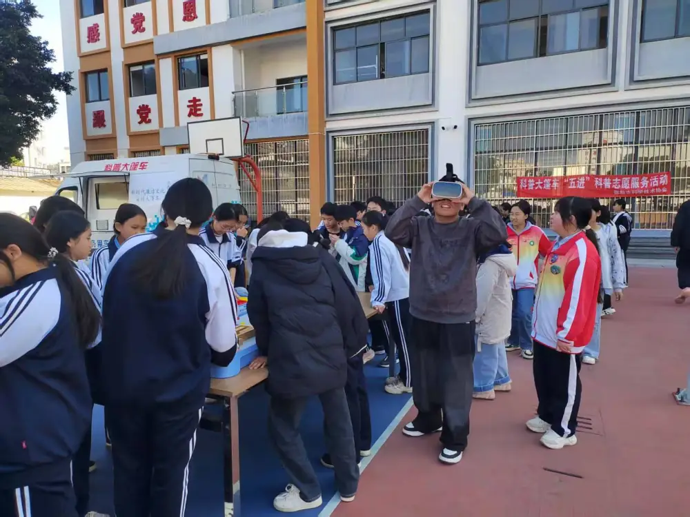 2026年1月16日,弥勒市科学技术协会组织科普志愿服务队,携“科普大篷车”驶入弥阳中学,举办了一场“科普大篷车五进科学实践”志愿服务活动,为校园带来了沉浸式的科技体验。