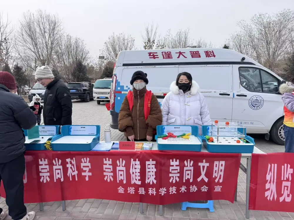 2026年1月19日,金塔县羊井子湾乡政府楼前人头攒动、暖意融融,由县委宣传部主办的“赶文明大集 送文化下乡”——学习贯彻党的二十届四中全会精神文艺宣讲暨文明新风宣讲宣传活动热闹启幕。金塔县科协紧扣活动主题,立足职能定位,在互动体验区搭建科技服务平台,以“科普大篷车+精准服务”模式,将前沿科技、实用技术送到群众家门口,为乡村振兴注入强劲科技动能。活动现场,县科协精心设置的科技服务展位前咨询者络绎不绝。工作人员围绕党的二十届四中全会提出的“农业农村现代化”战略部署,结合羊井子湾乡葡萄特色产业发展需求,开展靶向式科技培训和技术咨询服务,详细解答农户在品种选育、水肥管理、病虫害绿色防控等方面的难题。科普大篷车带来的智能农机模型、生态种植展板等互动展品,让群众直观感受科技赋能农业的魅力,现场发放的《设施葡萄栽培技术手册》《科普惠农实用指南》等资料,以通俗语言解读专业知识,获得农户广泛好评。