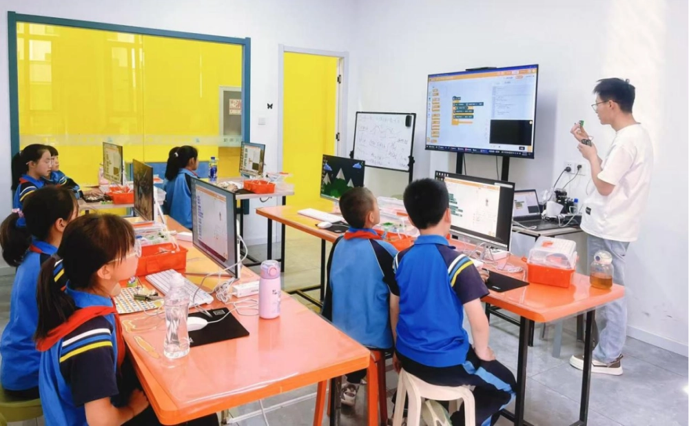 明亮的教室里,电脑屏幕上跳动的代码组成了奇妙的指令。专业老师用动画演示、趣味互动的方式讲解编程逻辑:“就像搭积木,把指令按顺序排好,小角色就能按设计行动啦!”同学们试着拖动模块、调试程序,看着屏幕上的角色“听话”移动,成就感满满。