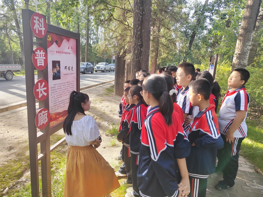 阳光洒在科普长廊前,同学们排着整齐的队列,眼中闪烁着期待的光芒。在县科协工作人员和老师的带领下,大家有序进入科普长廊,开启了一场奇妙的科学探索之旅。