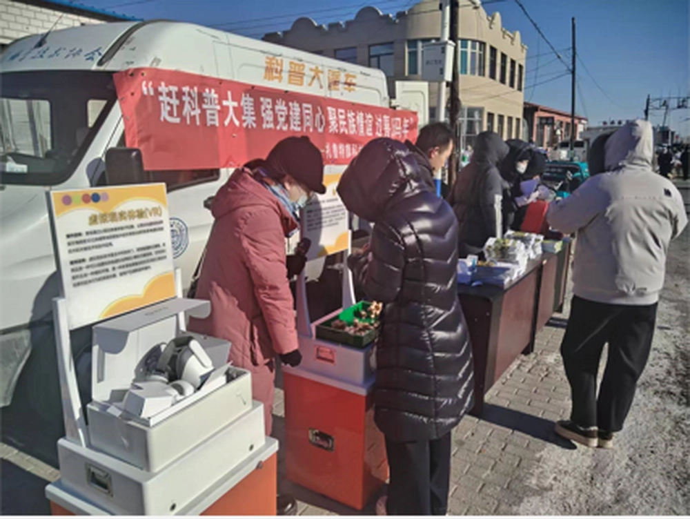 过了腊八就是年,在春节来临之际,以赶集为契机,以科普为载体,深化党建引领作用,推动科普工作下沉基层、扎根群众,进一步凝聚各民族群众同心奋进的合力,1月27日,扎鲁特旗科协主动联合香山镇科协,组织志愿者乘坐满载科普资源的科普大篷车驶入香山镇五道井子村,开展“赶科普大集 强党建同心 聚民族情谊 过喜庆马年”科普志愿服务活动。立足群众节日期间的实际需求,将科普惠民服务精准送到群众家门口。
