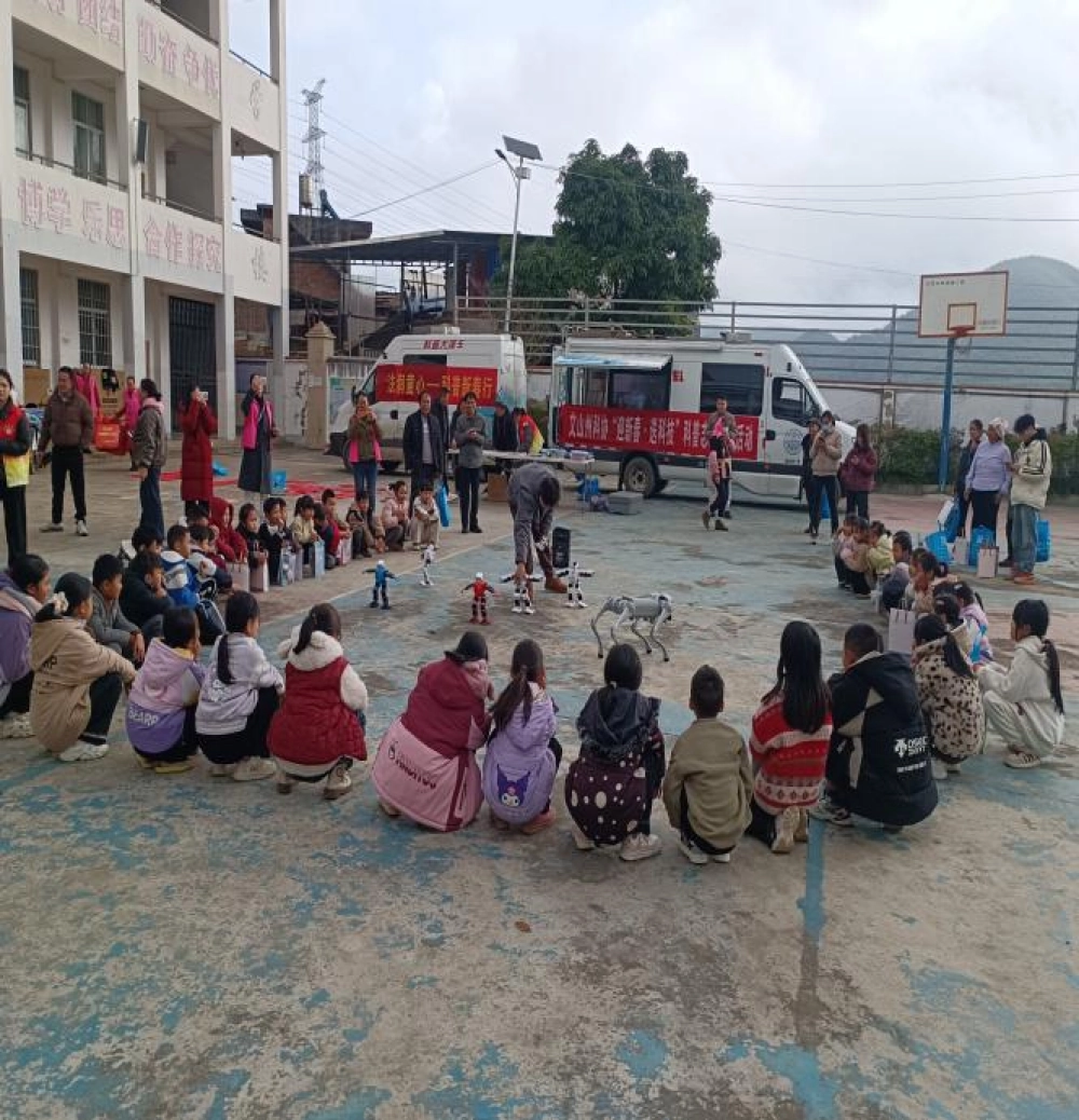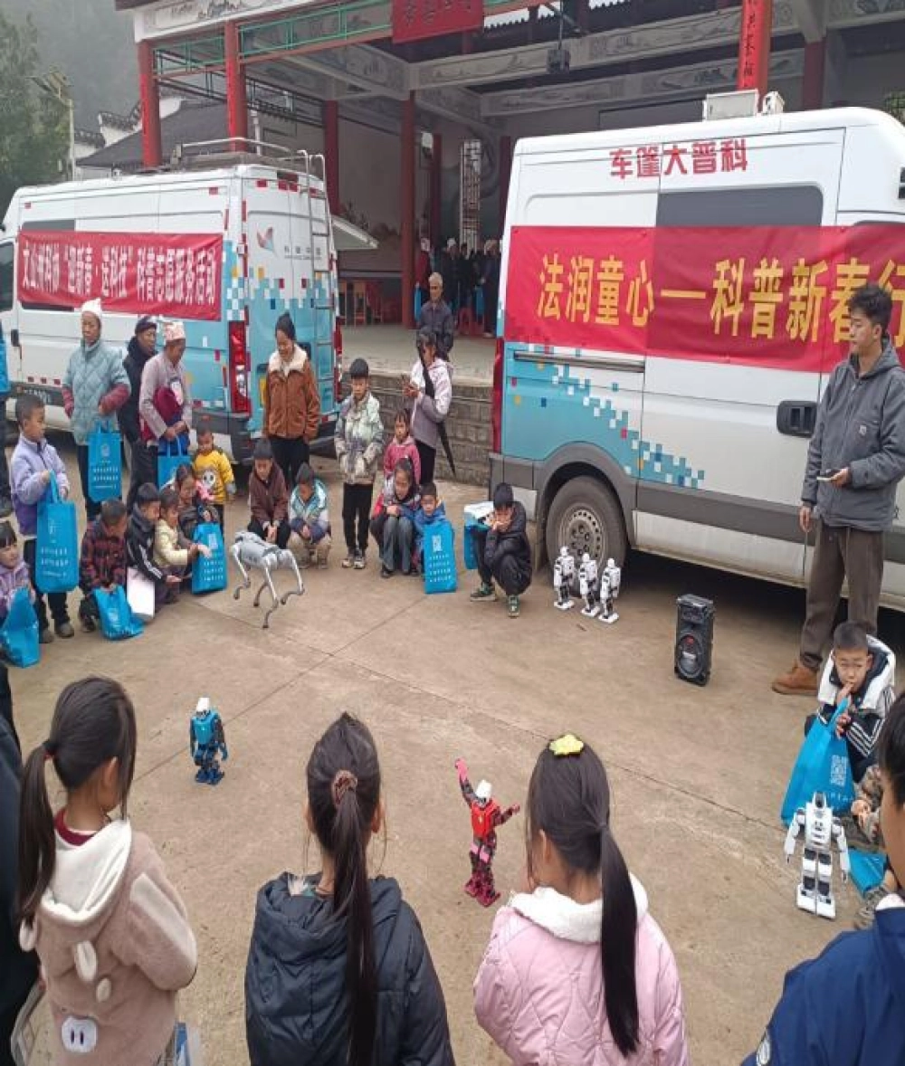 科技体验,点燃科学梦想。本次活动的一大亮点是机器人、机器狗等科技设备展示与互动表演。智能机器人的灵活操作、机器狗的敏捷动作,吸引了众多孩子和村民驻足观看,惊叹声与欢笑声此起彼伏。这一环节极大地激发了青少年对科学技术的兴趣与好奇心,在亲身体验中感受科技魅力,播撒了科学探索的种子。