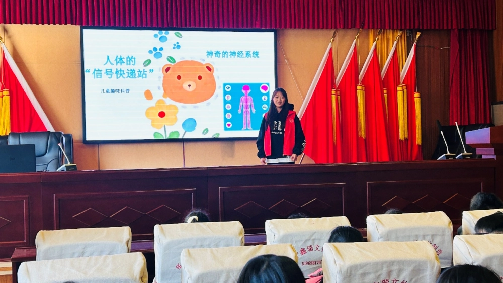课堂上,科普志愿者利用生动有趣的动画视频,直观演示了“神经信号传递”的过程,帮助孩子们理解信息在大脑与身体间如何快速传导。在“大脑分区拼图”互动环节,孩子们积极动手、边玩边学,迅速掌握了不同脑区的主要功能。志愿者还结合日常生活,向孩子们讲解了保持充足睡眠、均衡饮食、维持正确坐姿等习惯对神经系统发育的重要性,引导孩子们从小树立健康意识。