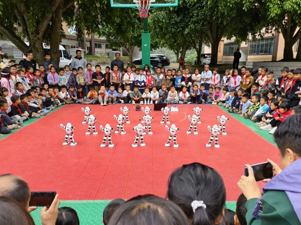 活动现场,灵活矫健的机器狗率先引爆气氛,迈着稳健步伐穿梭,时而打滚比心,时而走近人群握手,甚至能完成后空翻、左空翻等高难度动作,引得同学们阵阵惊呼。机器狗表演刚落幕,15个机器人组成的“表演天团”即刻登场,在操控指令下,它们整齐列队,随音乐同步完成转身、摆臂、跳跃等动作,精准划一的姿态让台下同学纷纷挥臂应和,掌声此起彼伏。