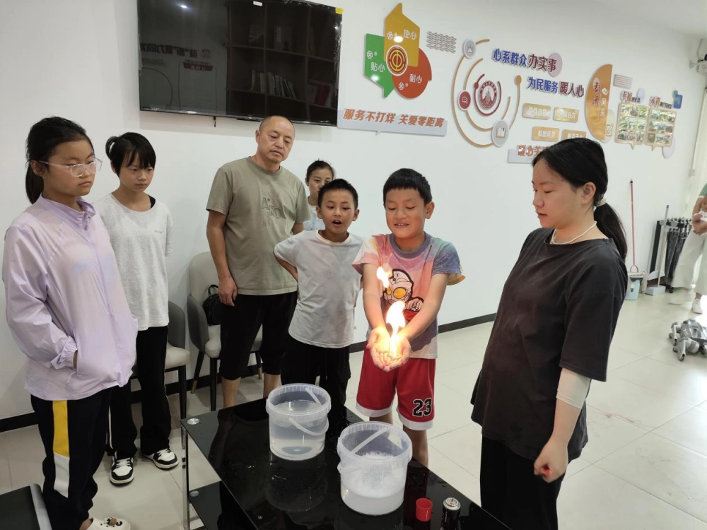 活动尾声,科普辅导员带领孩子们亲身体验火焰掌、空气炮等精彩的科学实验。火焰在手掌间跳动却丝毫无损,空气炮发射出的强大气流令人惊叹。这些神奇的实验不仅让孩子们增长了见识,更使他们深切感受到科学的无穷力量。