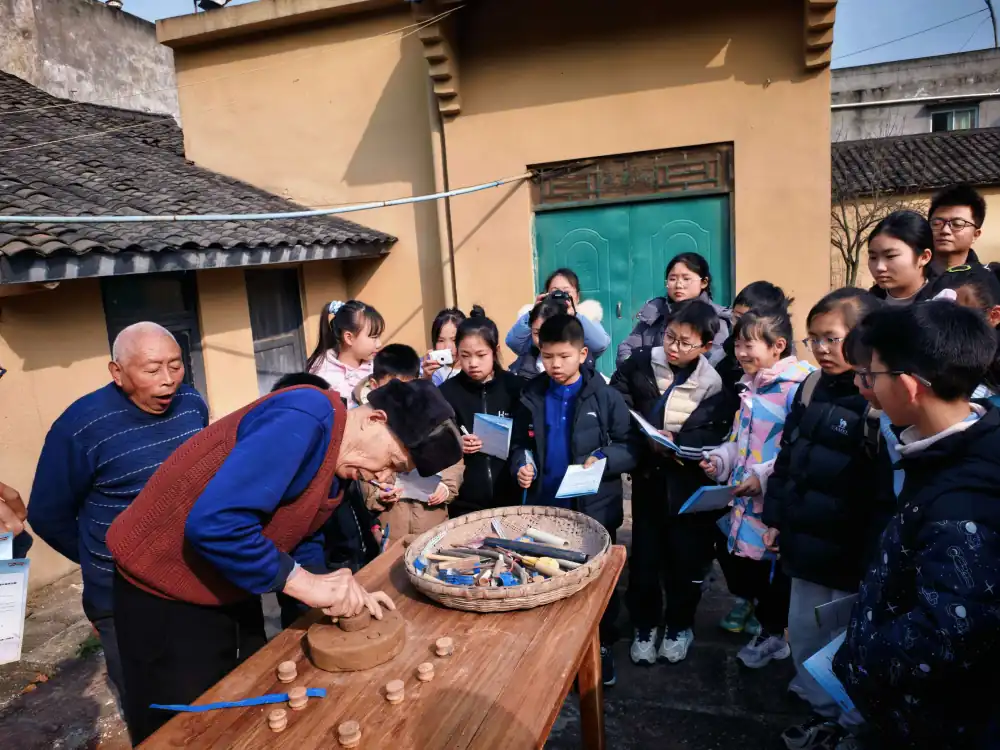 在沼源讲堂展示馆,学生们化身“小小科考员”,认真探秘沼气池的“四大结构”,并触摸一件件承载岁月痕迹的老旧工具,系统了解沼气技术发展历程;展示馆外,孩子们近距离观摩老匠人制作传统沼气炉具,亲身感悟传统工艺中流淌的匠心传承;实践环节,大家分组协作动手拼装“沼源一号”沼气池模型,从理解结构到拼接部件,在协作中碰撞思维火花,在实践中验证理论知识,将抽象概念转化为具象成果,现场洋溢着热烈而浓厚的研学氛围。