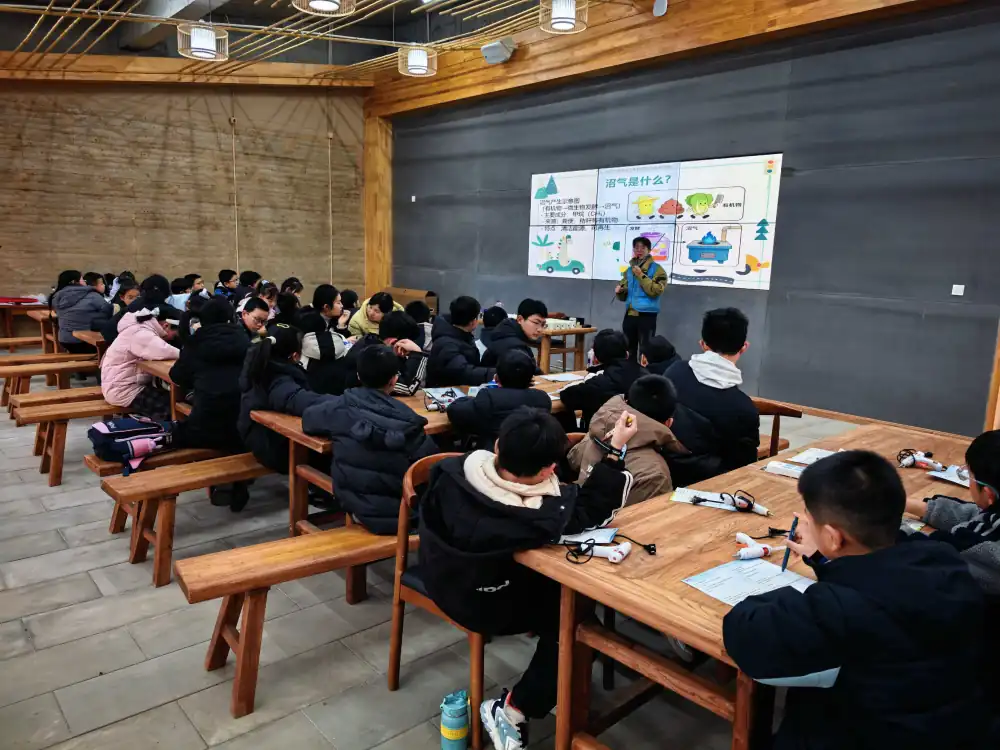 2026 年 1 月 30 日,中江县科协科普大篷车组织招募的 40 名青少年赴龙台镇沼源村,开展了一场以“探秘‘沼气之源’,争做‘双碳’先锋”为主题的天府科普(研学)游活动。