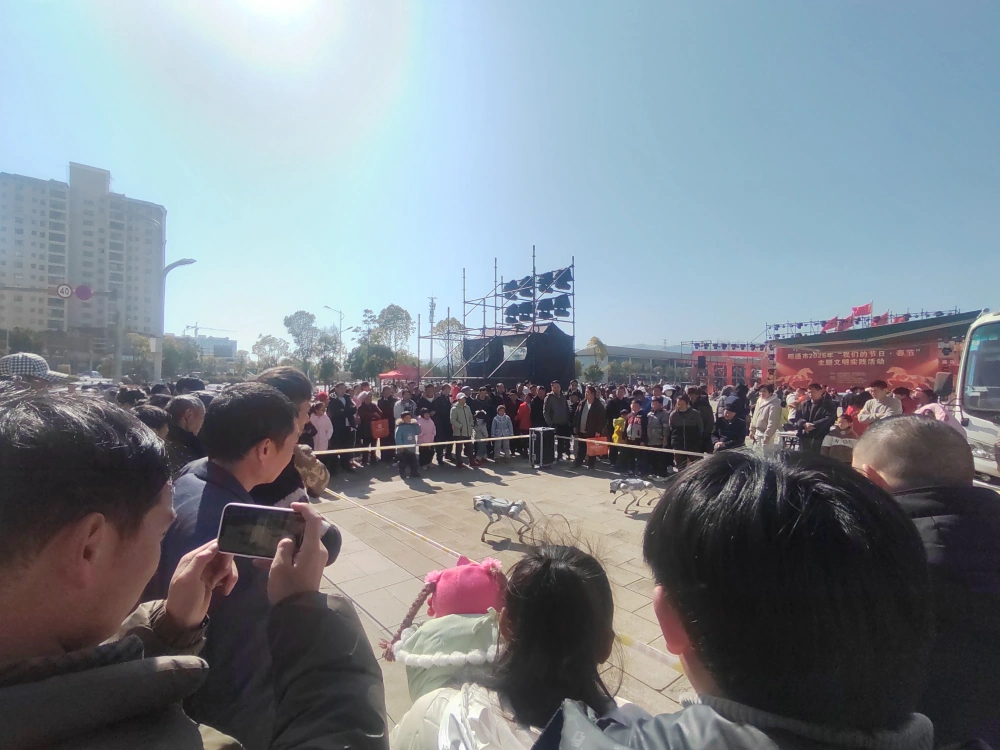 活动现场,县科协带来的机器狗表演成为一大亮点,灵活的动作、趣味的互动,让科技与年味碰撞出别样火花,吸引了众多市民驻足观看、打卡体验,让大家在欢乐氛围中感受科技魅力;县文联书法家协会的老师们挥毫泼墨,一幅幅饱含新春美好寓意的春联、福字跃然纸上,免费赠予现场群众,墨香里传递着浓浓的年味儿;卫健、消防、红十字会等部门也立足职能,为群众提供健康咨询、便民服务等,把暖心关怀送到百姓身边。