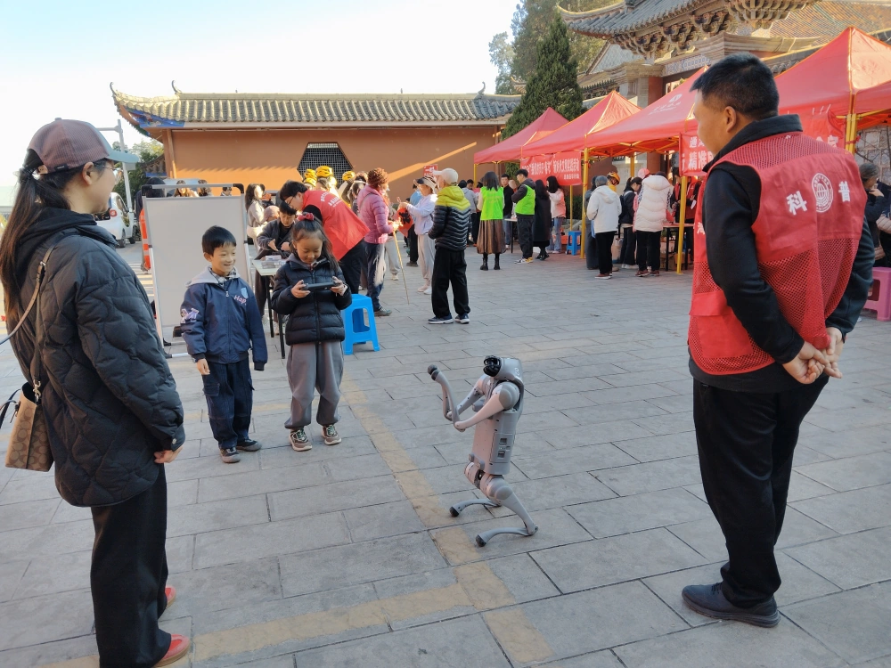 活动向群众展示科学仪器8组,指导孩子操控智能机器狗表演。