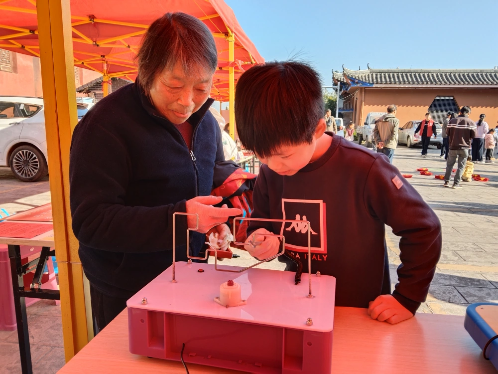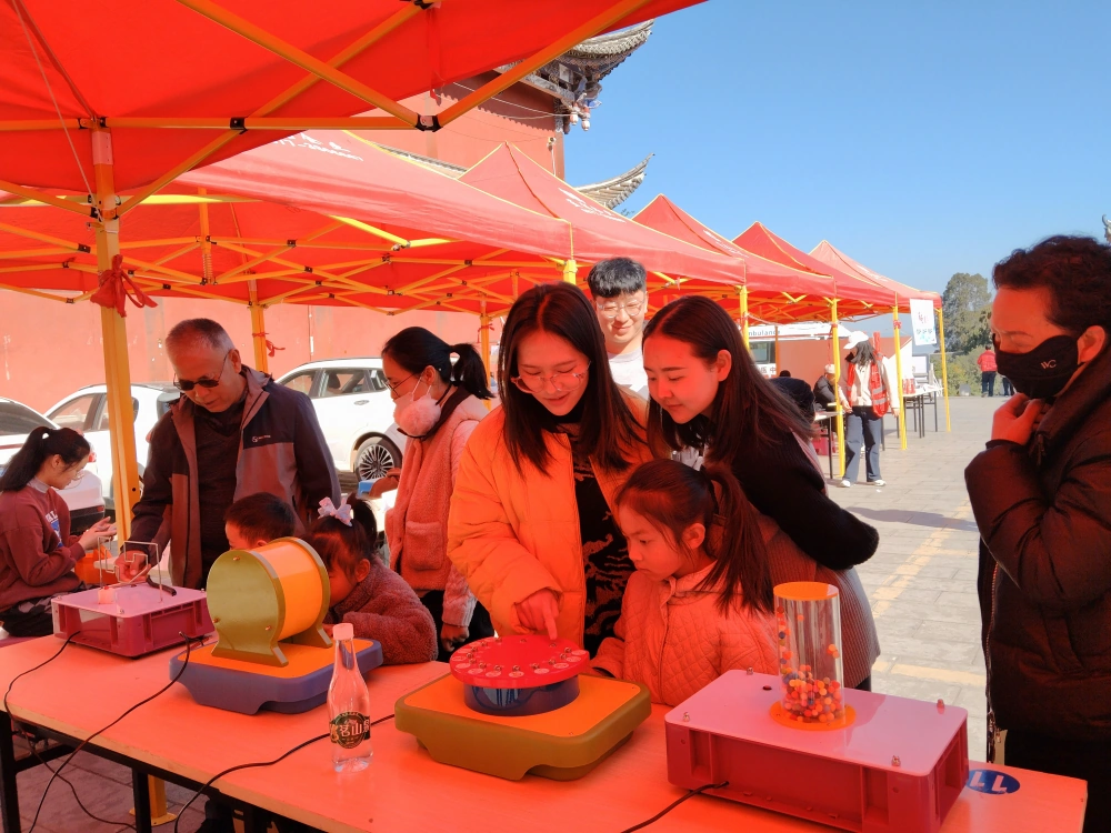 现场,前来观摩体验科普展具的群众和小学生络绎不绝,孩子们在把玩中学知识,眼里透着好奇,脸上溢满欢笑。许多成年人也跃跃欲试,凑上来体验一把。活动使科学普及工作贴近大众,让全社会广泛参与“普及科学知识,传播科学思想”活动中,为“移风易俗树新风”营造了浓浓的氛围。