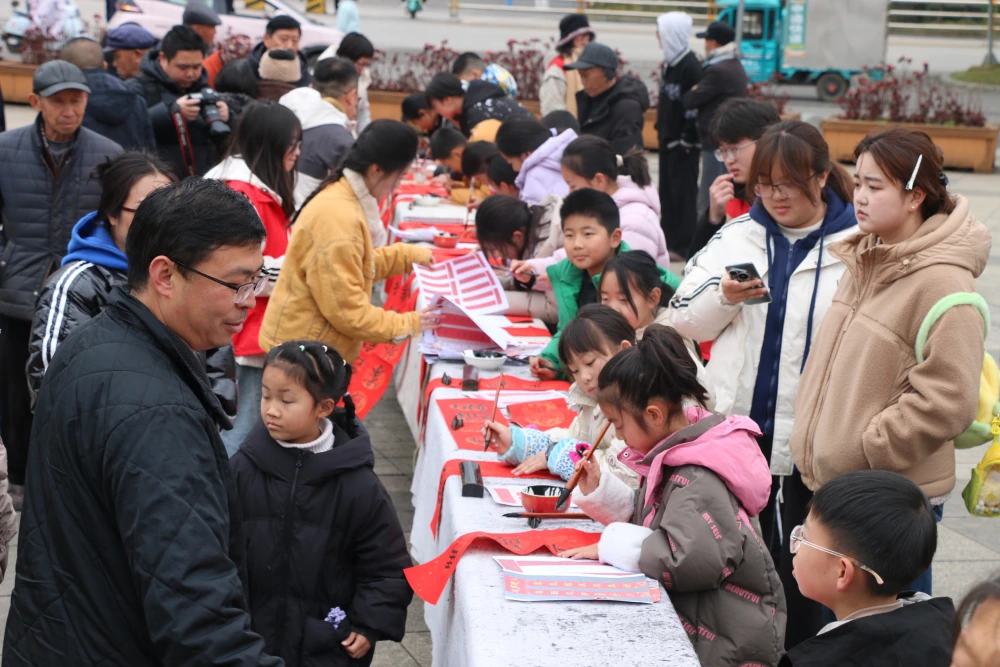 为增添节日喜庆氛围,活动特别邀请书法爱好者现场挥毫泼墨,为市民免费书写并赠送春联。红纸铺展、墨香四溢,一幅幅寓意吉祥、笔力苍劲的春联新鲜出炉,“福”字、对联饱含新春祝福,市民们有序排队领取,脸上洋溢着幸福的笑容。手写春联承载着传统年味,也让科普活动更具温度与烟火气,受到现场群众的广泛欢迎。