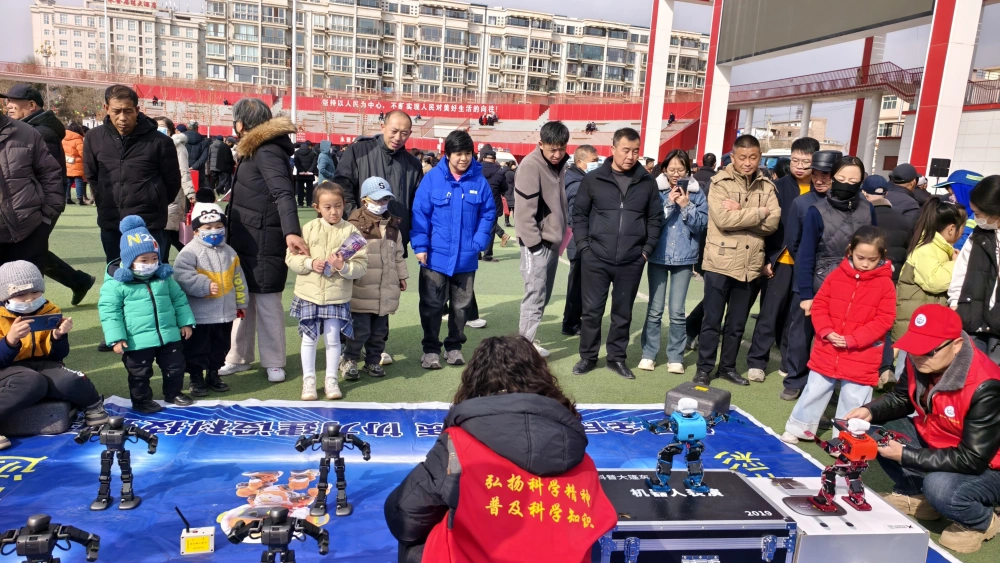 作为活动的“科技亮点担当”,科普大篷车满载升级更新后的新型展品惊艳亮相,将“流动科技馆”直接搬到群众家门口。机器人展演区里,灵活的机械臂完成精准动作,智能交互演示引得观众频频驻足;仿生机器狗“铁蛋”流畅行走、响应指令,时而跳跃时而转身,生动展现了机器人技术的仿生学应用与前沿发展,孩子们追着机器狗欢呼雀跃,现场氛围热烈非凡。