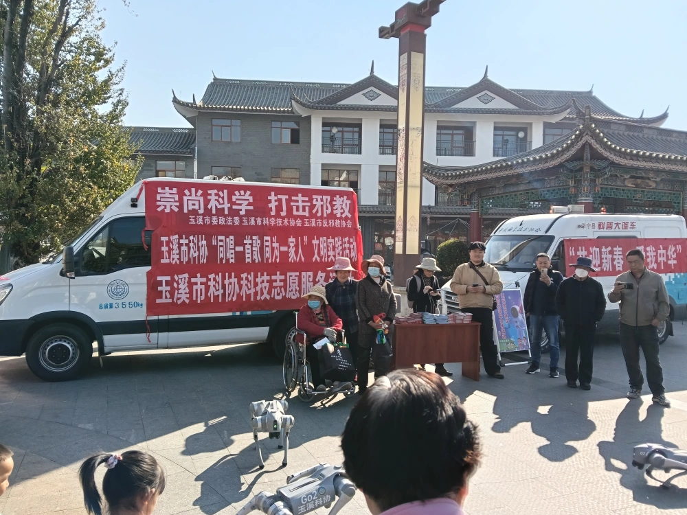 2月6日玉溪市科协科普大篷车联合红塔区、峨山县、华宁县、江川区科协走进峨山县嶍峨广场参加市委宣传部2026年文化、科技、卫生“三下乡”活动,把便民服务与科普惠民送到群众家门口,开展集中示范与志愿服务活动,以移动服务阵地打通服务群众“最后一公里”。活动现场,科普大篷车化身“流动科技馆”,搭载电磁、光学、力学、安全应急等互动展品与科普展板,吸引居民与青少年驻足体验。