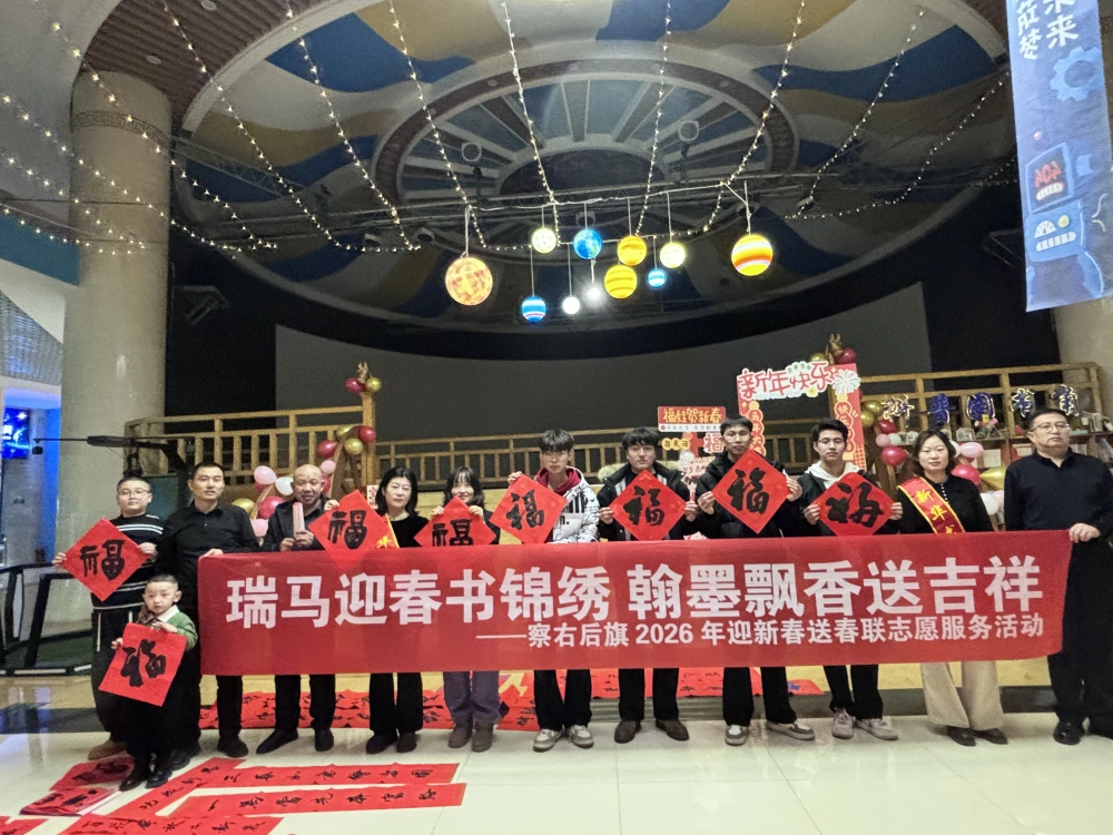 小年纳福瑞,翰墨迎新春。2月10日,农历腊月二十三,正值北方小年,由察右后旗科学技术协会、察右后旗文学艺术界联合会,察右后旗新华书店联合主办的2026年迎新春送春联志愿服务活动,在察右后旗科技馆温情启幕。本次活动以“瑞马迎新书锦绣,翰墨飘香送吉祥”为主题,将传统年味与科普力量相融,为北疆大地的新春增添了浓浓暖意。