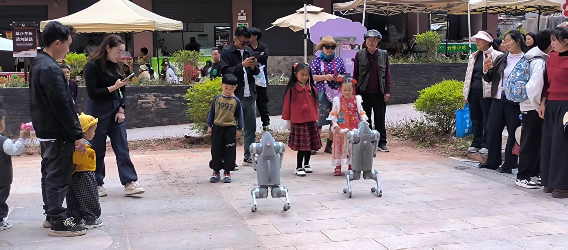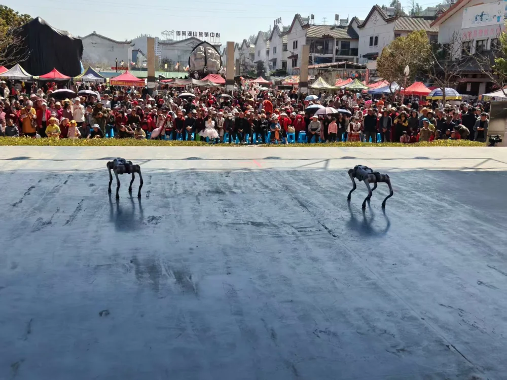 大年初二中午2点,大姚县科协2只机器狗现身三潭风景区国风广场,与汉服展演、左脚舞等轮番上阵,吸引景区游客纷纷驻足观看、拍照打卡,现场掌声、欢呼声此起彼伏。游客纷纷表示,第一次在大姚县景区近距离观看机器狗表演,既新奇震撼,又真切感受到科技发展的魅力。