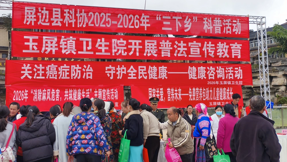 2月8日,正值新春将至之际,县科协深度参与了在大围山民族广场开展的屏边县2025-2026年文化科技卫生“三下乡”暨“法律进农家”集中示范活动。此次活动以“科技赋能新春·科普惠及万家”为主线,通过沉浸式科技体验与接地气科普服务相结合的方式,为群众送上了一份兼具趣味性与实用性的“新春科普礼”。