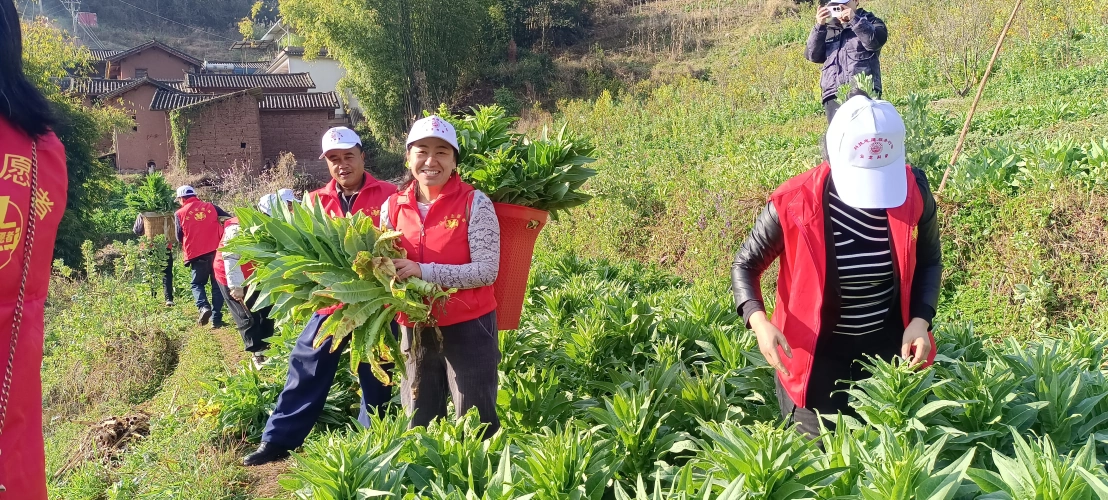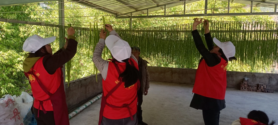 本次活动紧紧围绕当地贡菜特色产业发展需求,精准对接农户生产实际。活动现场,志愿者们分工协作、干劲十足,与农户并肩劳作,全程参与贡菜采收、去皮、切条、晾晒等加工环节,用实际行动为群众纾困解难。同时,志愿服务队立足产业发展关键技术需求,现场开展贡菜病虫害防治与田间管理、适时采收、科学去皮、规范切条、晾晒加工五大专题技术培训,同步开展“田间教学+实操指导”。