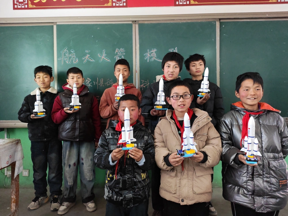 在火箭模型制作与发射原理讲解环节,活动迎来高潮。科普志愿者围绕火箭结构、飞行动力、发射原理等航天知识进行深入浅出的讲解,结合图片与实物演示,让孩子们了解我国航天事业的发展成就。随后,在志愿者的指导下,孩子们分组动手组装火箭模型,从拼接、固定到调试,每一步都认真细致、充满专注。五年级学生苏建激动地说:“我的火箭制作成功!我以后也要当科学家,制造真的火箭,飞向太空!”