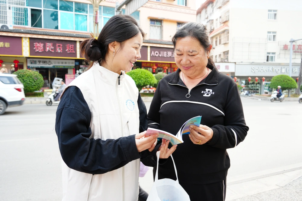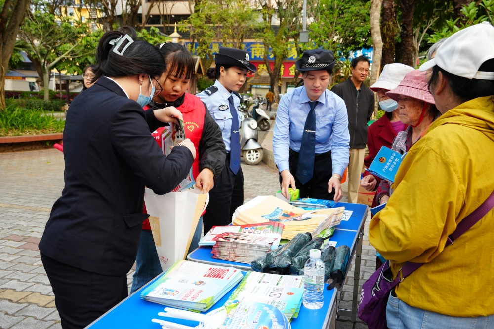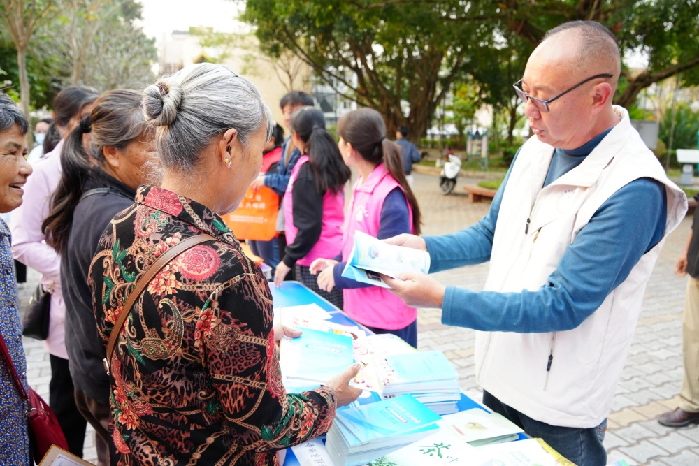 在城区街心花园,县科协与多家单位共同搭建起“科普+服务”联合宣传台。身着各色马甲的科技志愿者们热情地向过往群众发放宣传资料,耐心答疑解惑,成为街头一道亮丽的风景线。此次活动共发放各类宣传资料500余份,内容兼具实用性与针对性:既有新修订的《科学技术普及法》和《妇女权益保障法》等法律法规宣传,引导妇女运用法律武器维护自身合法权益;也有《反邪教知识读本》《防灾避险应急手册》,帮助提升家庭安全防范能力;还结合本地特色发放《中傣医药知识图册》,将健康理念送进千家万户。