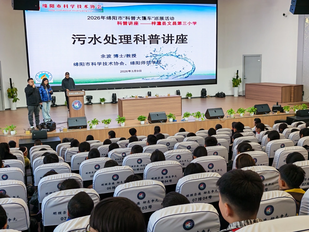 2026年3月9日,春意盎然,梓潼县文昌第三小学的校园里洋溢着欢声笑语,一片热闹非凡的景象。绵阳市科普大篷车进校园巡展活动在这里精彩上演,为全校1222名师生带来了一场集科学性、趣味性、参与性于一体的"科普大餐",让孩子们零距离感受科技的独特魅力。