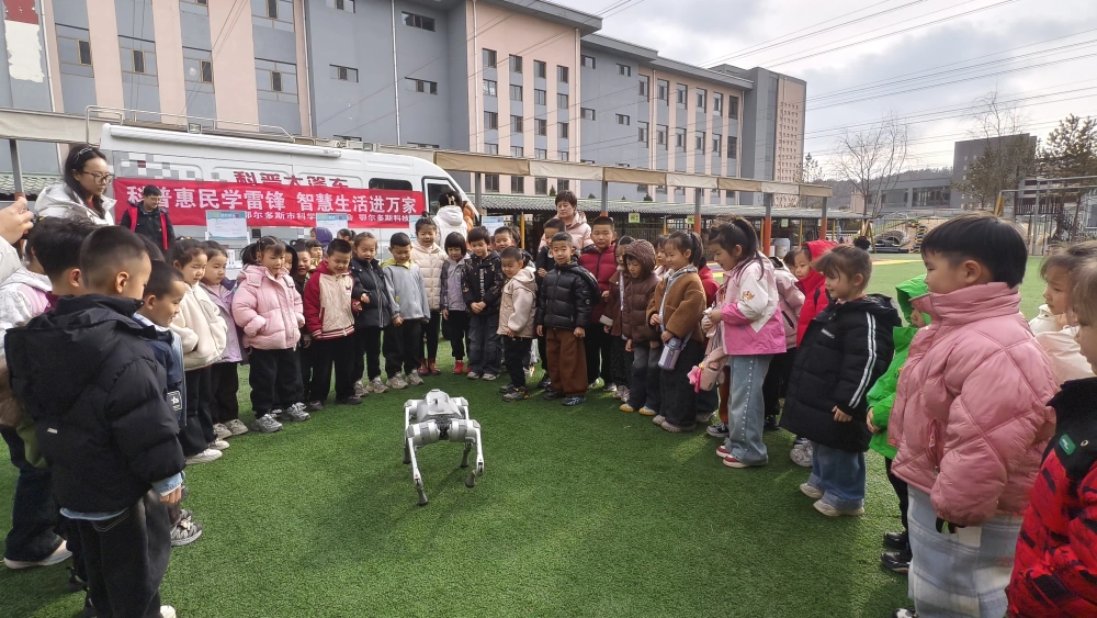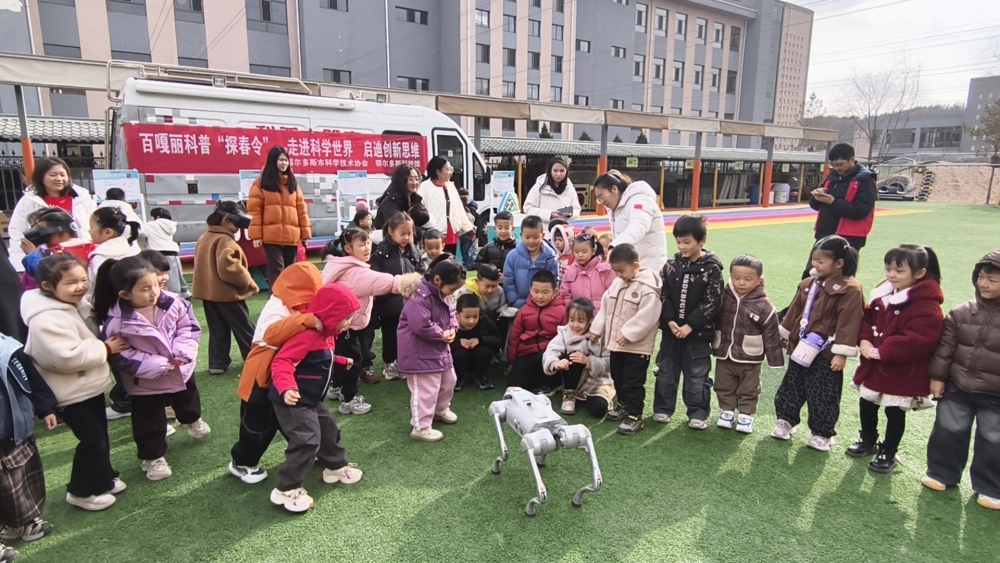科普大篷车走进伊旗乌兰木伦幼儿园,将优质科普资源送到幼儿身边。孩子们通过动手操作、亲身体验,直观感知科学原理;灵活可爱的机器狗完成踏步、跳舞等萌趣动作,引得现场欢呼不断;VR眼镜则带领孩子们“穿越”深海,沉浸式体验蛟龙号下潜的奇妙历程,让孩子们感受虚拟现实技术的震撼。