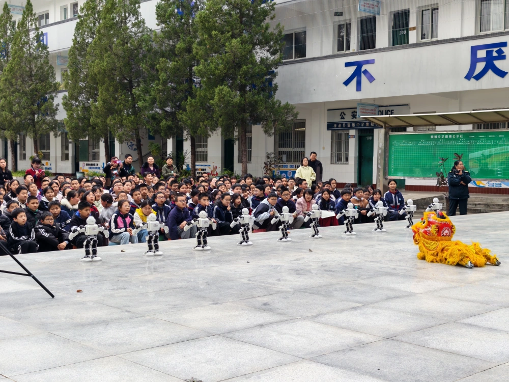 活动现场,16件科普互动展品整齐亮相,涵盖力学、光学、电磁学、生命科学等多个领域,将抽象的科学原理转化为可操作、可感知的趣味体验,同学们围在展品旁动手操作、相互探讨,在实践中解锁科学奥秘,校园瞬间变身“流动科技馆”。机器人灵动舞蹈、机器狗灵活展演、无人机空中穿梭等科技表演轮番登场,流畅的动作、炫酷的操作引得现场阵阵欢呼与掌声,点燃了孩子们对人工智能与前沿科技的浓厚兴趣。