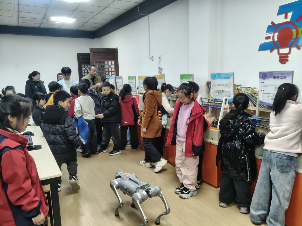 本次活动以 “送科普进校园、助力双减、提升青少年科学素养” 为核心宗旨。科普大篷车化身 “流动科技馆”,将互动展品、趣味实验、智能机器狗搬进课堂,打破传统科普界限,让孩子们在玩中学、做中悟,在亲身操作中近距离感受科学的神奇魅力。