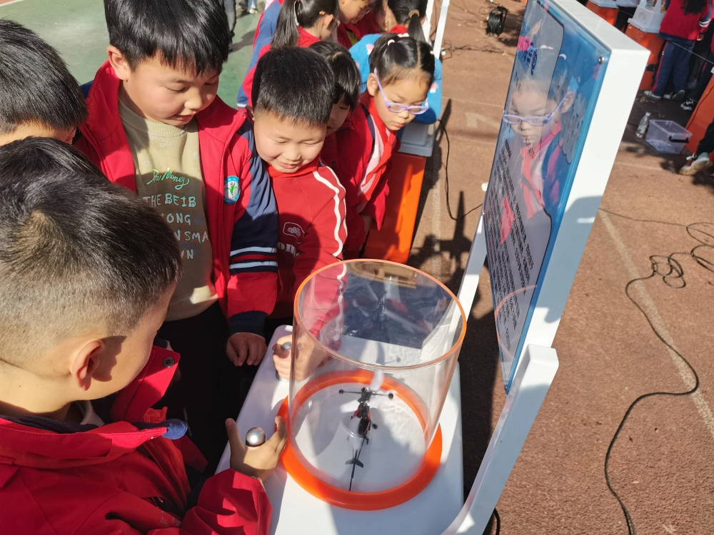 活动中,科普大篷车化身移动科普场馆,集中展示了力学、光学、电磁学等多个学科领域的科普互动展品。“尖端放电”电光流转、“旋转的银蛋”在操作下稳稳直立、“无弦琴”挥手即奏响声响,一系列奇妙现象让同学们目不暇接、赞叹连连。在科普工作人员的耐心讲解与引导下,同学们主动参与互动、动手操作,近距离感受科学的奥秘与乐趣。