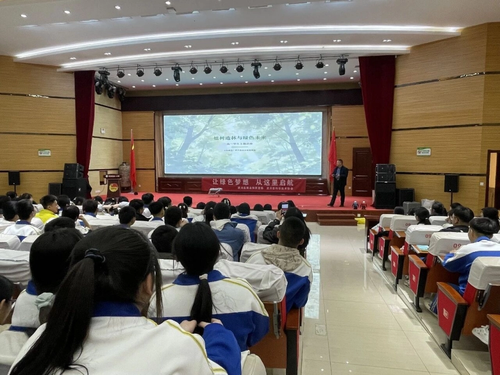 春回大地,万物复苏。在植树节来临之际,3月11日,武川县科学技术协会与武川县林业和草原局联动走进武川县第一中学,紧扣铸牢中华民族共同体意识这条主线,以关心下一代健康成长、培育时代新人为宗旨,成功举办“让绿色梦想从这里启航”系列生态科普宣传活动。本次活动是继此前走进其他校园后的又一站,通过“植树造林与绿色未来”主题讲座与科技展示相结合的方式,为600余名中学生带来了一场别开生面的绿色生态盛宴,让绿色理念与民族团结意识共同扎根青少年心中。