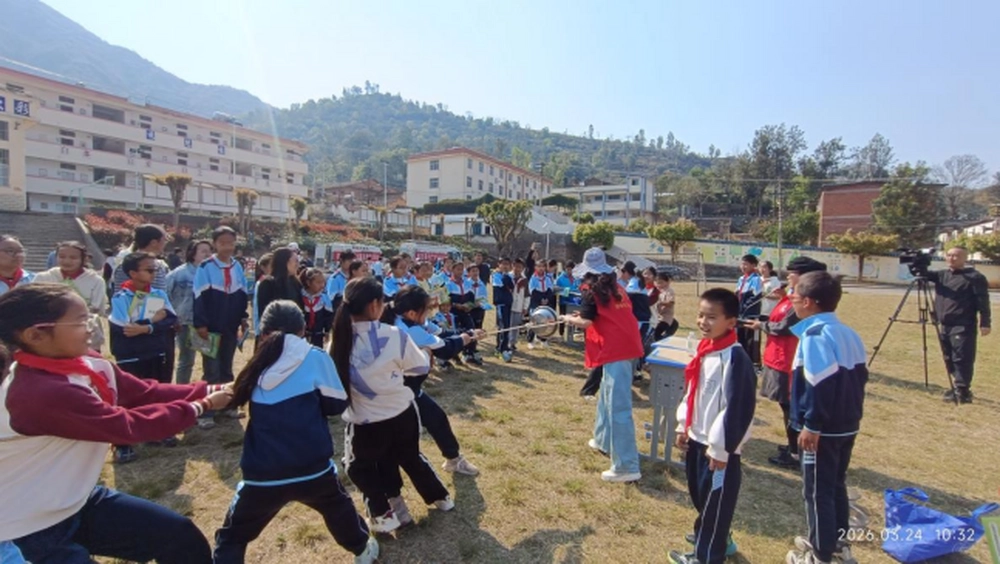 3月25日,2026年科普大篷车联合行动的第三天,昆明市东川区科学技术协会来到新平县嘎洒镇,以“科技润疆强素质 兴边富民新科普”为主题,为全校2000余名师生带来了一场别开生面的科普盛宴。
