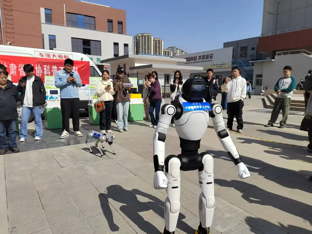 上午10时30分,活动正式拉开帷幕。伴随着旋翼的轰鸣声,“飞天龙凤”无人机编队腾空而起,在校园上空交织出流光溢彩的视觉画卷,科技与艺术的融合瞬间点燃现场气氛。紧随其后的科普表演秀高潮迭起——液氮动力球、液氮大炮、气体变声、火焰掌等趣味实验轮番登场,将深奥的物理化学原理化为直观震撼的感官体验,引得在场学生连连惊叹,掌声与欢呼声此起彼伏。活动现场,省、市科普大篷车化身“移动科技馆”,车载科普展品、裸眼3D电视、机器狗、无人机等互动体验项目前排起长队。学生们在亲手操作中感受声光电的奥秘,在智能设备互动中触摸前沿科技的温度。