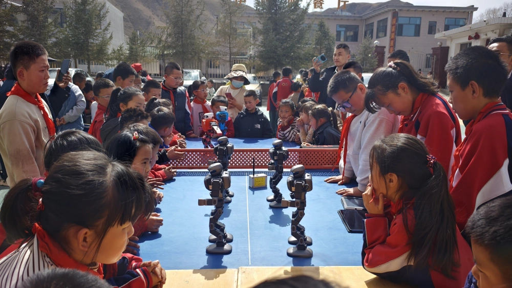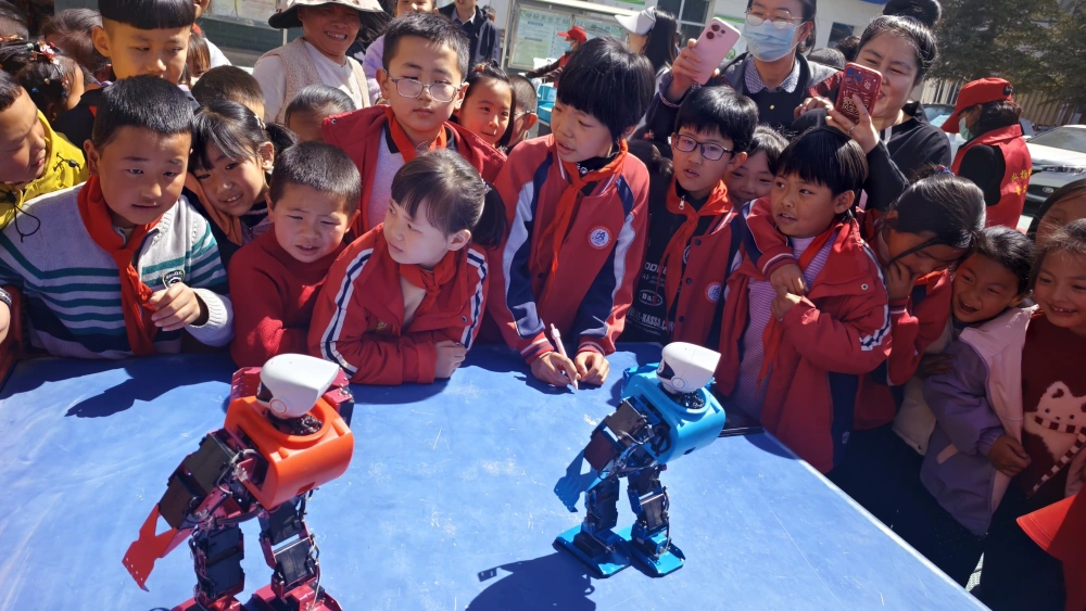 活动现场气氛热烈,科技感十足。在人工智能体验区,学生们通过语音指令精准操控机器人,成功完成了“连续后翻”“近身格斗”“倒立”等一系列高难度复杂动作,引来阵阵欢呼。在科普工作人员的悉心指导下,孩子们还亲自上手操作,指挥机器狗灵活完成跑动、跳跃、作揖等生动动作,近距离感受智能控制的魅力。