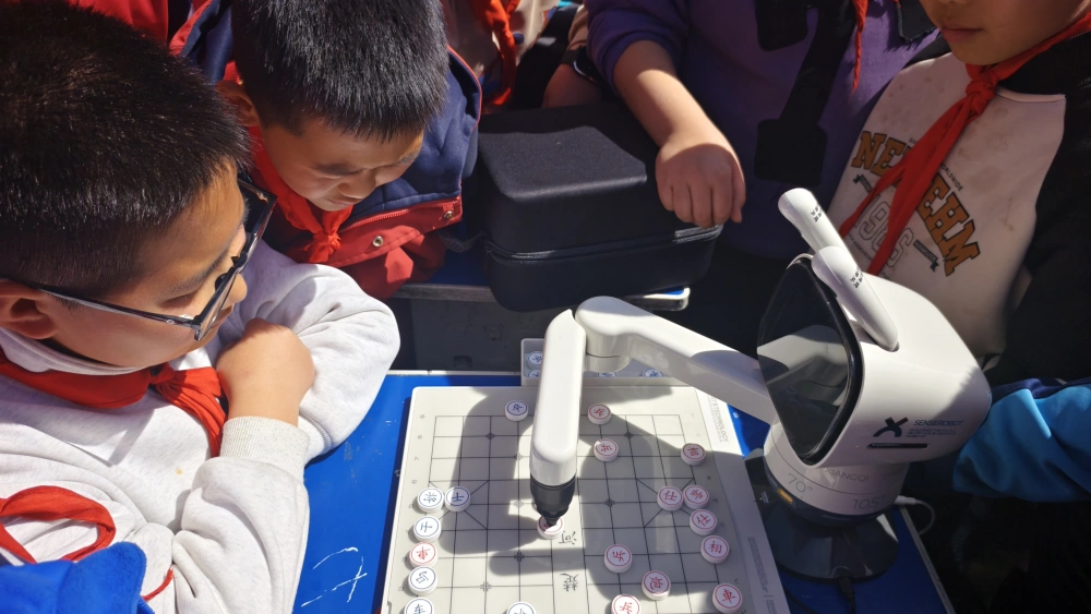 此外,“元萝卜”三合一下棋机器人凭借其强大的智能交互能力,引发了在场师生的浓厚兴趣与热烈讨论。而MR(混合现实)眼镜体验区,则带领学生们在现实与虚拟之间自由穿梭,以前沿科技拓宽了孩子们的视野。