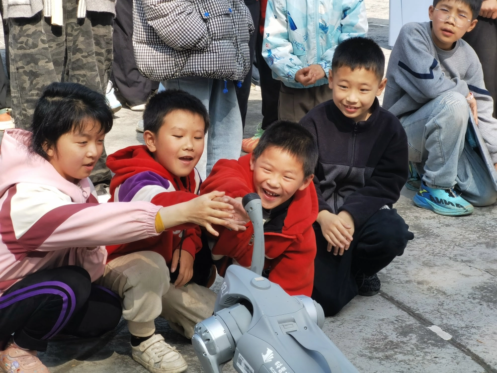 沉浸式科技体验环节备受欢迎。活动现场设置了科普展品、智能棋类、气象演示、机器人表演、机器狗表演五大展区。同学们有序参与,亲手操作声、光、电、磁互动展品,与AI机器人对弈竞技,近距离参观气象装备,观看机器人舞蹈与机器狗灵活展演。大家在动手实践中感受科学原理,零距离接触前沿科技,现场充满惊叹与欢笑。